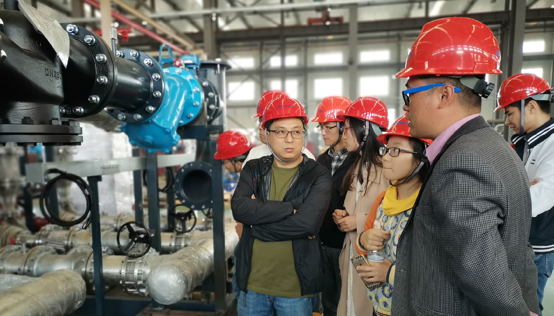 2019年10月31日,上海同濟院建筑設計研究院的暖通設計專家團在曾主任的帶領下來到了艾克森太倉機組工廠,隨行的年輕小伙伴們——設計師還參加了艾克森的換熱實踐課,課后大家一起參觀了艾克森太倉換熱機組的整體生產工藝,了解了換熱機組從設計到加工制造和出廠測試的全流程和質量控制點。艾克森上海團隊全程參與了本次活動,技術人員通過全方位的案例視頻、產品動畫、PPT和樣本等多種方式,系統的介紹了艾克森換熱設備產品的性能和產品應用特點,分享了艾克森換熱機組在不同行業的經典應用案例,還針對換熱機組在項目設計應用中遇到的難點問題與設計師團隊進行了深入的溝通和交流。