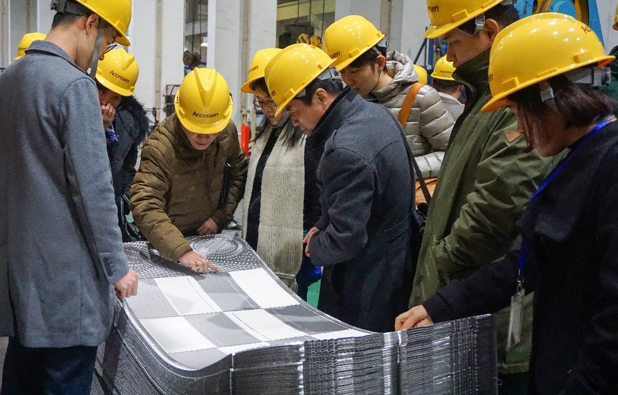 艾克森技術人員向專家團詳細介紹了板式換熱器、焊接式換熱器和板式換熱機組等產品,并與專家們分享了艾克森產品在醫藥食品行業的成功應用案例和技術特點。帶領專家團走進謝春路工廠和太倉工廠的生產一線,觀看了艾克森的生產加工設備,了解板式換熱器整個生產工藝的流程。公司引入的先進自動化生產設備,包括全球先進的電泳涂裝生產線和自動化焊接機器人、換熱機組全性能測試平臺、E-cloud智慧能源系統等設備,引起了專家們極大的興趣。就艾克森核心的板式換熱技術向專家團介紹了板片的獨特設計,可以根據不同的工況設計不同的形狀和深度,以達到最佳換熱效果。機器人切割和焊接技術,更大程度保證管件尺寸精確,焊接質量更穩定。電泳涂裝生產線可以延長管道壽命,耐腐蝕性更高,耐高溫,降低管道阻力的特點等,得到了專家們的一致肯定。